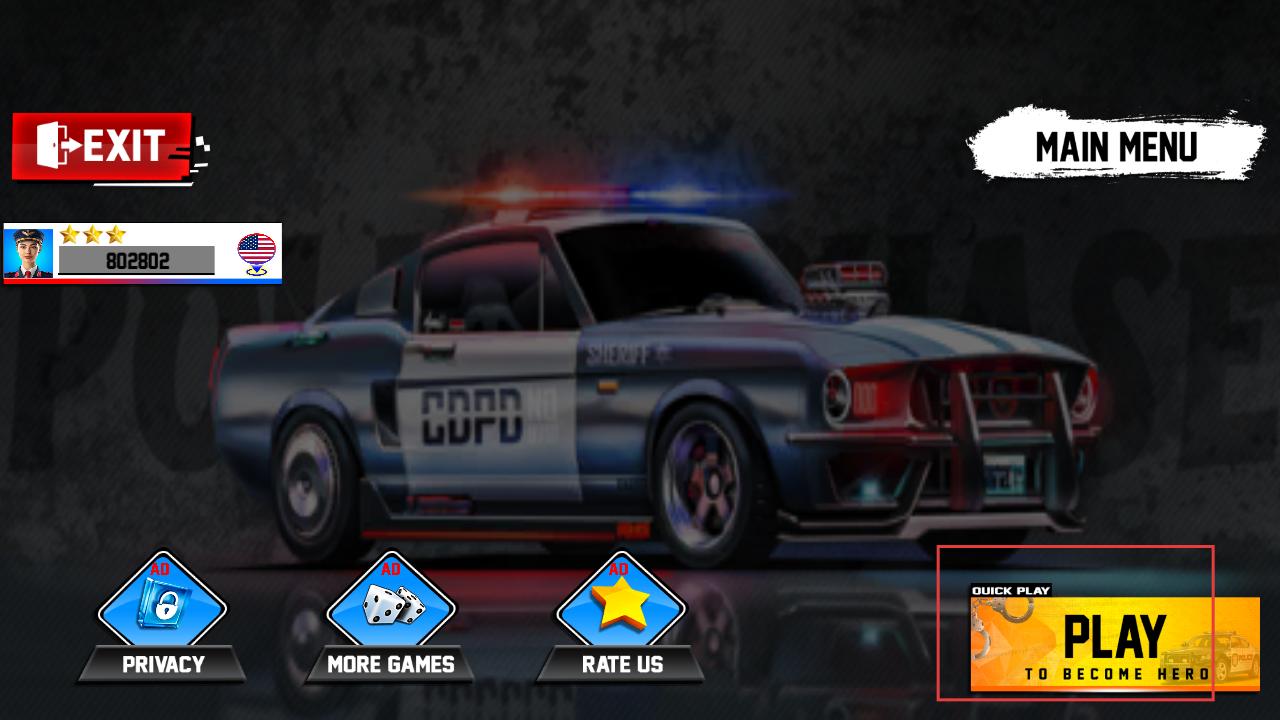 1、進入游戲主界面,點擊PLAY按鈕,開啟警察執(zhí)法的冒險之旅,準備駕駛警車執(zhí)行任務(wù)。