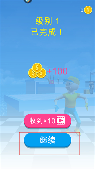 4、成功擊敗關卡內所有敵人后,會顯示關卡完成信息,并獲得金幣獎勵,點擊繼續(xù)按鈕進入下一個關卡。