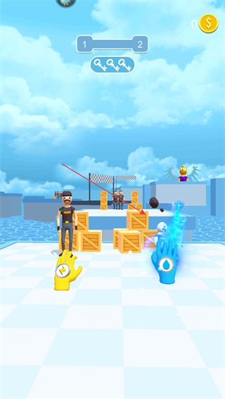 2、點擊選中的手套圖標釋放技能攻擊敵人,通過技能可以破壞敵人身前的障礙物或者直接對敵人造成傷害,為通關創(chuàng)造條件。