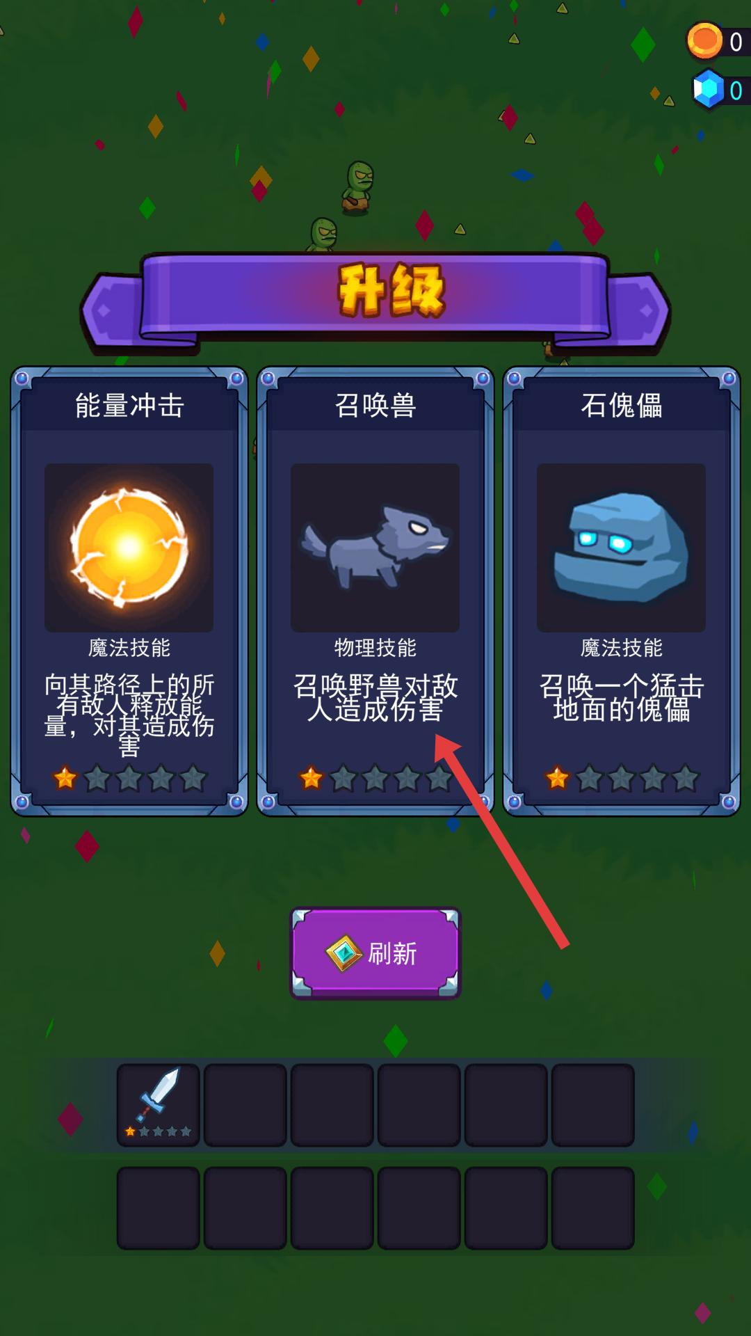 4、升級時,若想增強物理攻擊能力,可選擇【召喚獸】技能,它能召喚野獸對敵人造成傷害,助力戰(zhàn)斗。