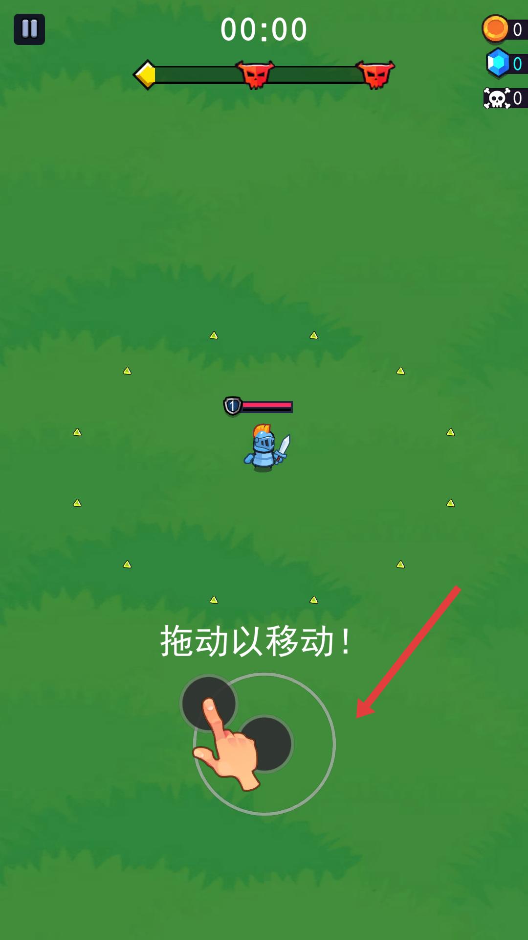1、游戲開始按照提示,通過拖動下方操作區(qū)域來控制角色移動,靈活調(diào)整位置,為戰(zhàn)斗或探索做好準備。