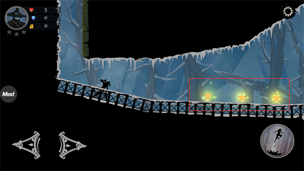 2、通過點(diǎn)擊屏幕上的攻擊按鈕,操控忍者收集這些盡可能多地收集星星,以獲得更高的關(guān)卡評(píng)分和獎(jiǎng)勵(lì)。