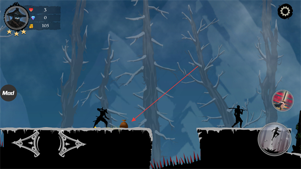 1、點(diǎn)擊Mod按鈕打開內(nèi)置作弊菜單,開啟無敵功能,讓忍者在面對(duì)敵人攻擊和陷阱時(shí)不受傷害更輕松地通過關(guān)卡。