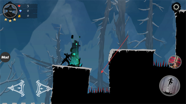 3、利用屏幕右側(cè)的跳躍按鈕,控制忍者進(jìn)行跳躍動(dòng)作,躲避場(chǎng)景中的陷阱合理規(guī)劃跳躍時(shí)機(jī)和路線,安全通過充滿陷阱的區(qū)域。
