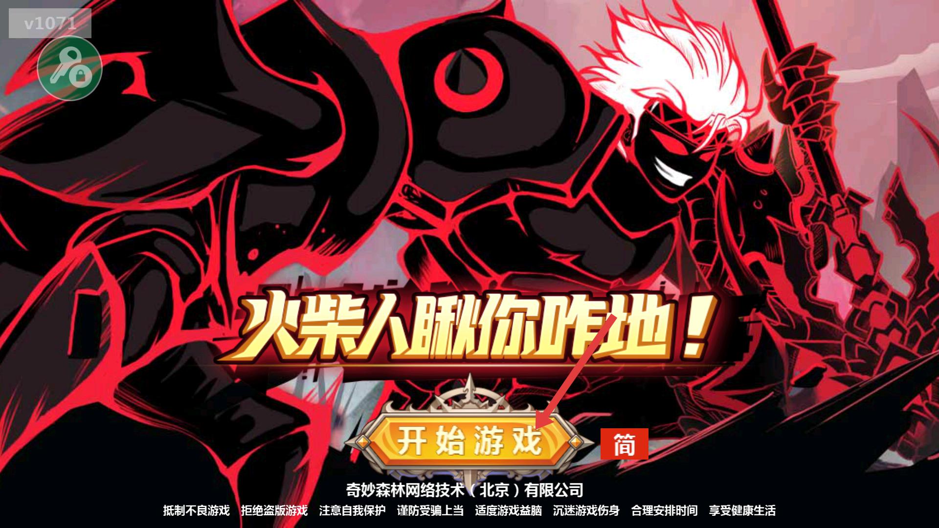 1、點擊開始游戲按鈕,即可進入【火柴人瞅你咋地】的游戲世界,開啟火柴人相關的冒險與戰(zhàn)斗,體驗游戲樂趣。