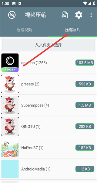 1、進入圖片壓縮界面,點擊壓縮照片選項,進入照片選擇頁面,準備挑選要壓縮的照片。