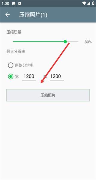 3、在壓縮設置頁面,根據需求調整壓縮質量等參數(shù),之后點擊壓縮照片按鈕,開始對選中的照片進行壓縮。