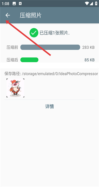 4、等待照片壓縮完成,界面會顯示壓縮成功的提示,此時可查看壓縮前后的照片大小等信息,也可返回進行其他操作。