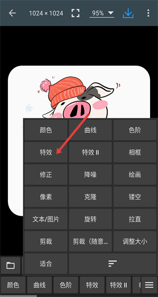2、選中圖片后進(jìn)入編輯界面,在功能菜單里找到特效選項(xiàng)并點(diǎn)擊,此時(shí)會彈出多種特效樣式供選擇,挑選喜歡的特效應(yīng)用到圖片上。