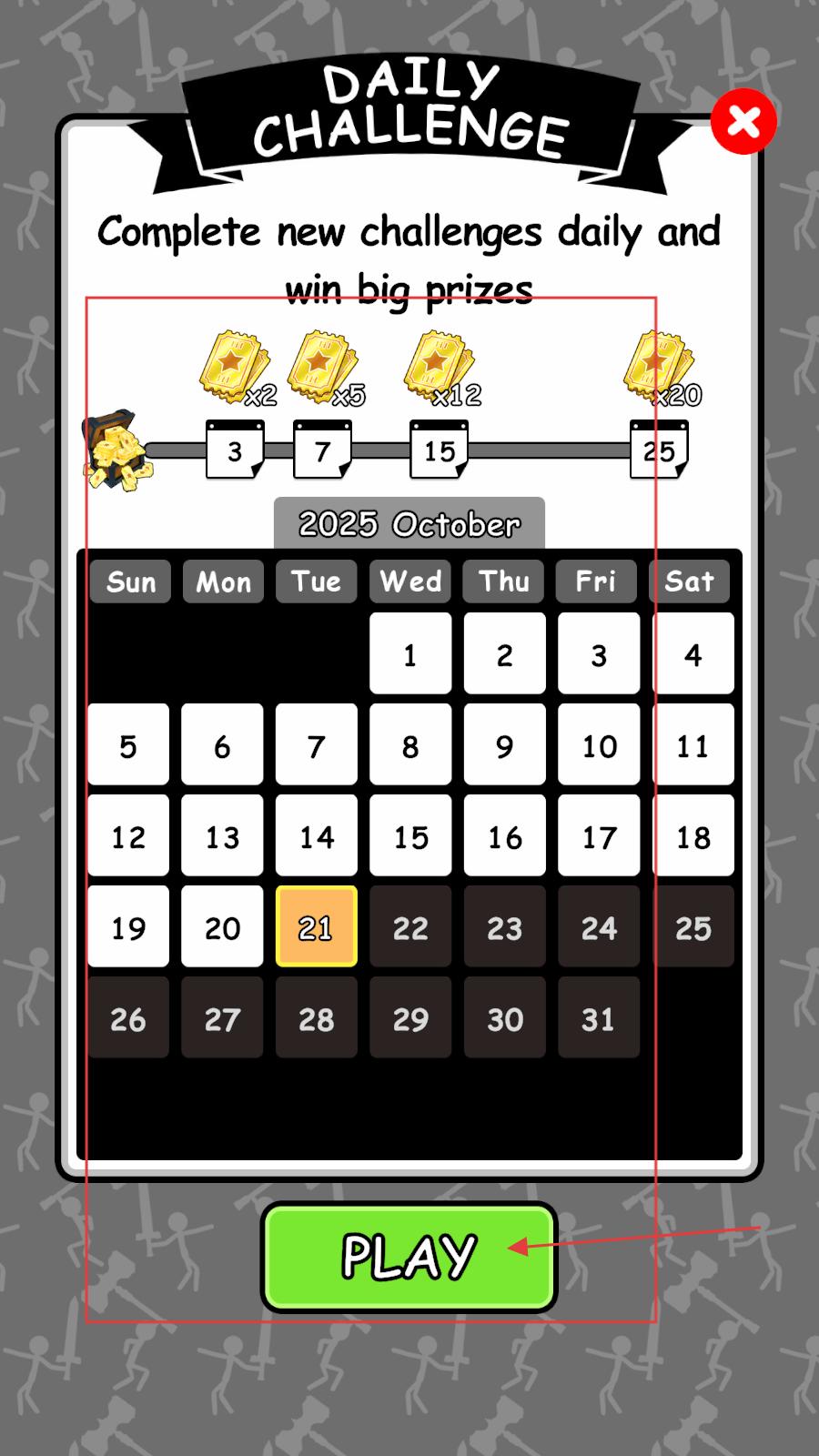 1、玩家進入可參與每日挑戰(zhàn),完成對應(yīng)天數(shù)任務(wù)可獲取獎券獎勵,點擊按鈕可領(lǐng)取,積累獎券用于兌換游戲資源。