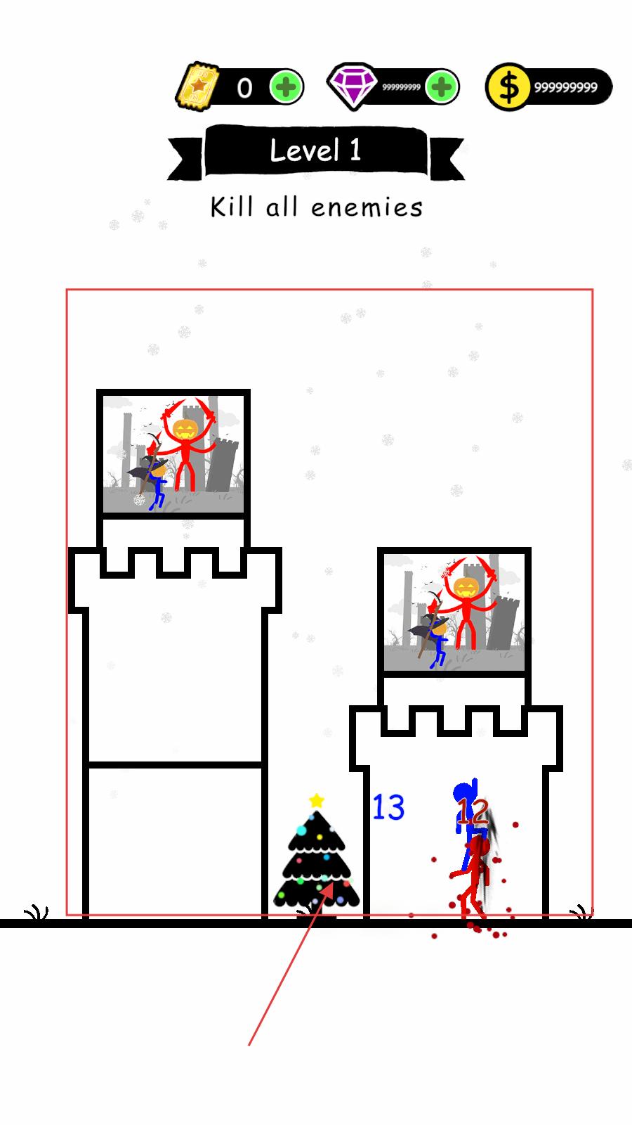 3、玩家進入關(guān)卡中需要操控藍色火柴人擊敗所有紅色敵人,注意敵人的分布位置,合理規(guī)劃戰(zhàn)斗策略。