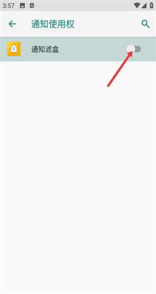 2、在通知使用權(quán)設(shè)置界面,找到通知濾盒對應(yīng)的開關(guān)按鈕,點擊該按鈕,開啟通知濾盒的通知使用權(quán)。