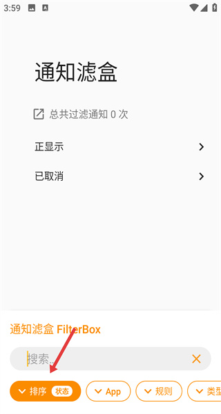 3、開啟權(quán)限后,進入通知濾盒主界面,找到底部的排序按鈕并點擊,進入選擇界面。