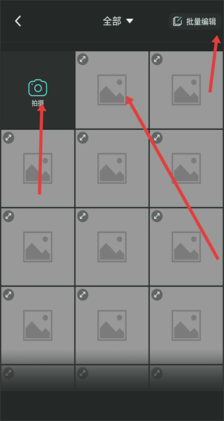 2、點(diǎn)擊批量編輯進(jìn)入界面,可選擇拍攝新照片或選擇已有圖片,勾選后開啟批量調(diào)色等處理流程。