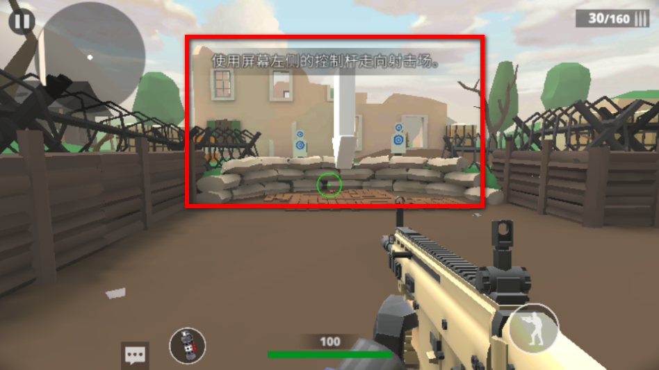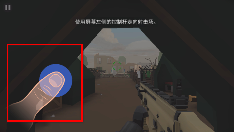 3、使用屏幕左側(cè)控制桿走向射擊場(chǎng),控制桿能靈活調(diào)整移動(dòng)方向,通過移動(dòng)接近射擊區(qū)域。