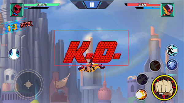 4、與敵方英雄展開戰(zhàn)斗,連招攻擊可打出圖標的效果,玩家隨后點擊即可進入下一關的關卡。