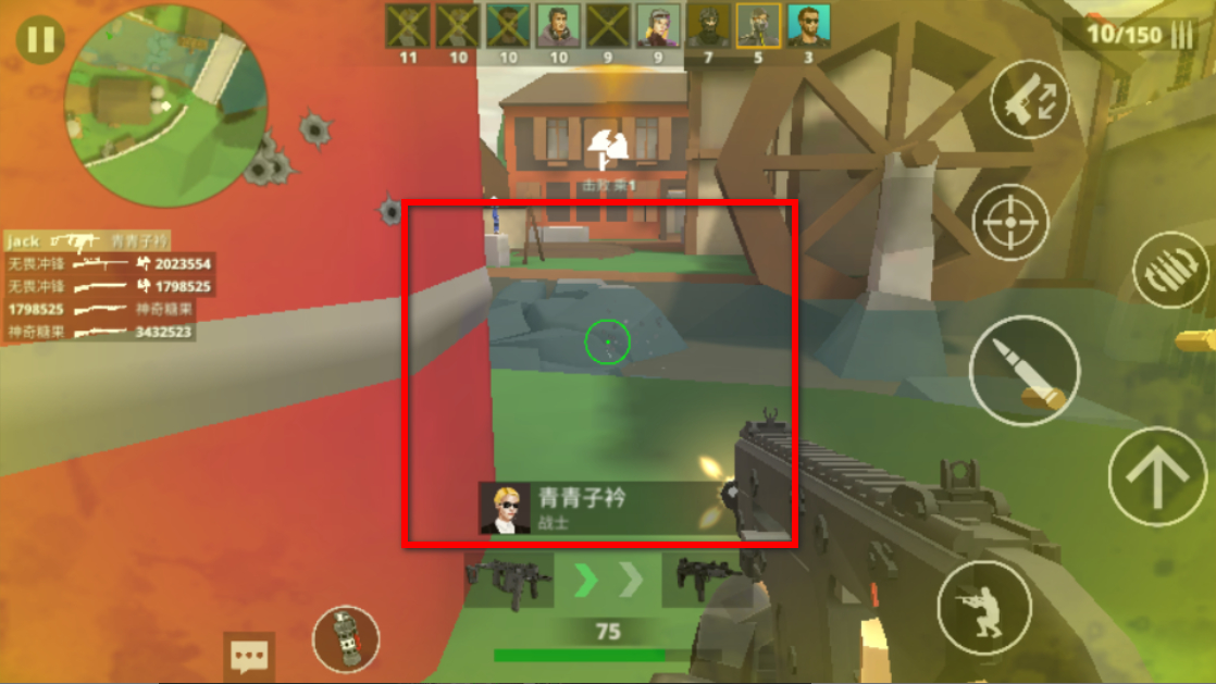 3、瞄準(zhǔn)敵方角色開火,擊敗敵人可獲得積分,同時注意自身血量,利用掩體躲避攻擊,提升生存與戰(zhàn)斗能力。