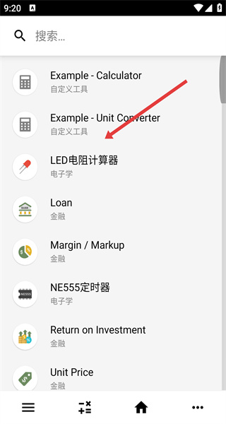 1、打開應(yīng)用后,找到并點擊LED電阻計算器選項,進(jìn)入對應(yīng)的計算界面。