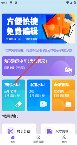 1、用戶打開軟件后,然后點擊抹除水印選項,進入水印處理界面。