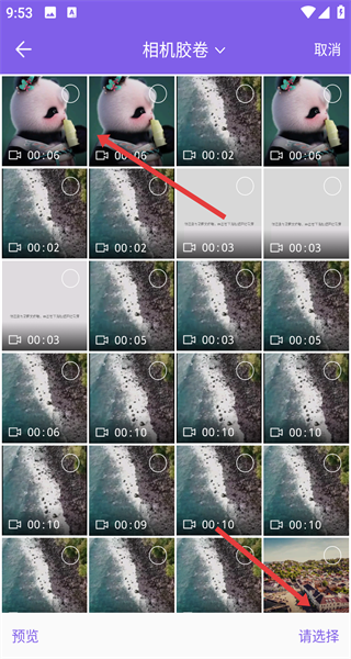 2、用戶需要在相機膠卷中選擇需要處理的視頻,進入下一步操作。