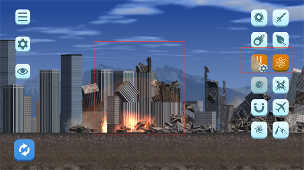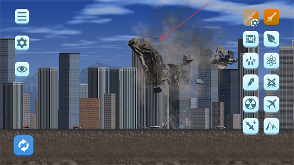 3、點(diǎn)擊左下角的重置按鈕,可恢復(fù)城市原貌,重新選擇破壞工具和區(qū)域,探索不同工具組合對(duì)城市的粉碎效果,嘗試解鎖更多破壞方式。