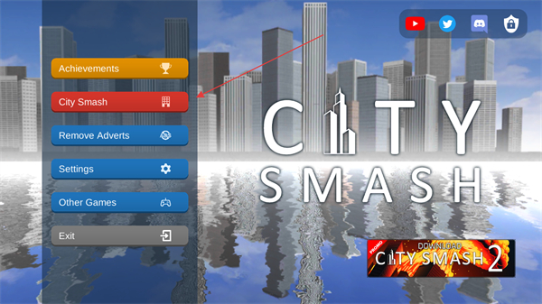 1、玩家下載游戲之后然后點(diǎn)擊進(jìn)入在游戲主界面點(diǎn)擊City Smash進(jìn)入城市粉碎模式,開啟對(duì)城市建筑的破壞挑戰(zhàn)。
