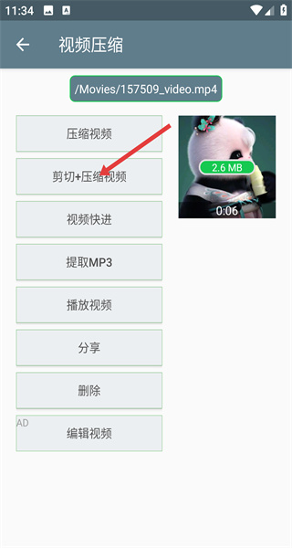 2、用戶選中需要的視頻后,點擊剪切并壓縮視頻選項,進入視頻剪切界面。