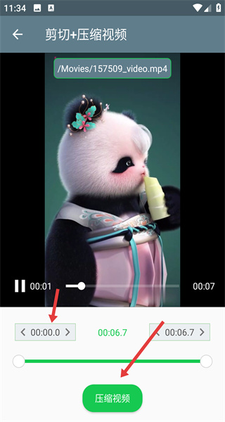3、在剪切界面調(diào)整視頻時長,完成后點擊壓縮視頻,進入壓縮進程。