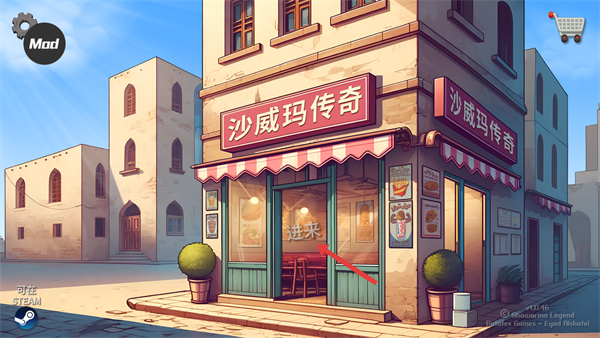 2、點擊沙威瑪傳奇店鋪的進來按鈕進入餐廳內(nèi)部,開啟你的沙威瑪餐廳經(jīng)營之旅,在店內(nèi)可進行后續(xù)的升級操作。