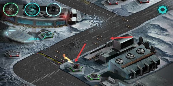 3、敵人來襲時,利用布置好的炮塔攻擊敵人,同時留意敵人的行進(jìn)路線,及時調(diào)整炮塔布局。
