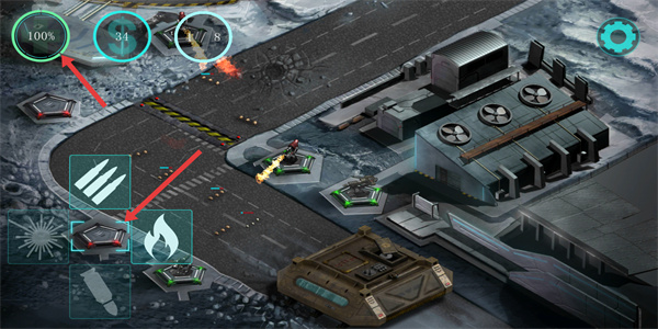 4、戰(zhàn)斗中,關(guān)注資源和技能按鈕,適時使用技能或升級炮塔,提升防御能力,保障任務(wù)順利完成。