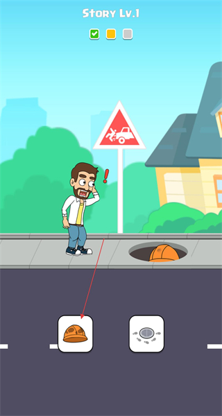 3、在新場景里點擊安全帽選項,完成該步操作,持續(xù)推動劇情發(fā)展,逐步完成關卡內的各項任務。