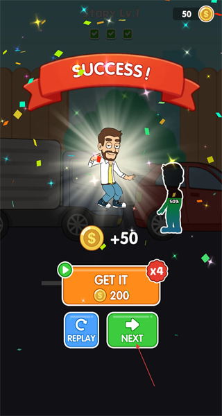 4、關卡成功后,在成功界面點擊綠色NEXT按鈕,進入下一關準備界面,順利完成第一關的通關操作。