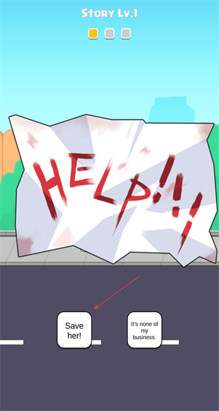 2、在求助場景,出現救她與與我無關兩個選項,選擇救她,推進劇情至新場景,場景中呈現安全帽與其他物品選項,需進行物品選擇操作。