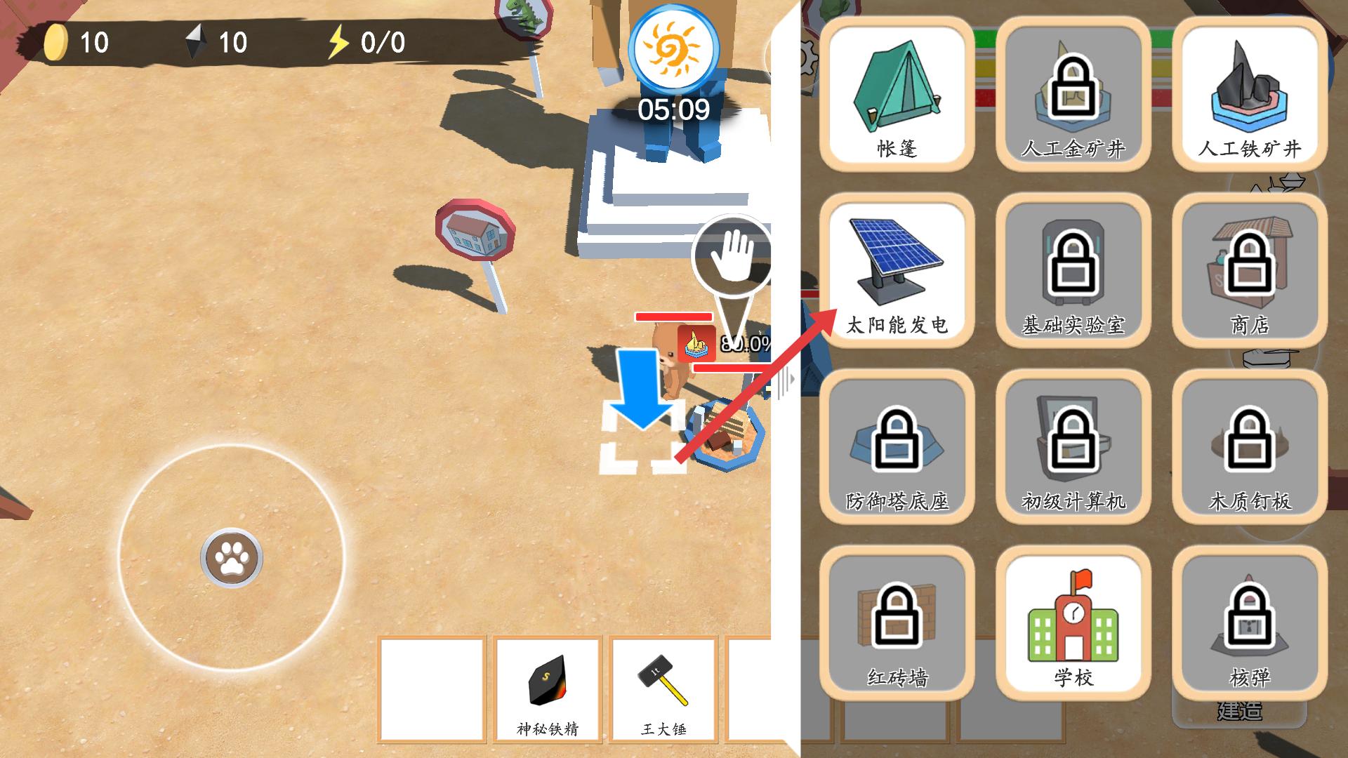 4、在建造界面,可選擇太陽能發(fā)電設(shè)施進行建造,以此獲取電力資源,為后續(xù)建筑與設(shè)施運行提供能源支持,推動基地發(fā)展。