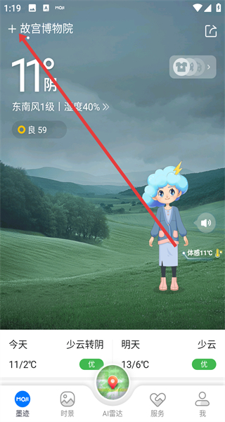 1、進(jìn)入單個(gè)城市如故宮博物院天氣頁(yè),能夠查看實(shí)時(shí)溫度風(fēng)力和濕度等詳情,瀏覽未來(lái)預(yù)報(bào)左上角可返回列表精準(zhǔn)掌握該地氣候。