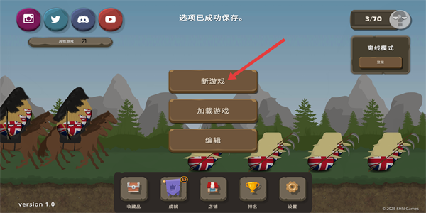1、玩家下載完畢進(jìn)入游戲后,點(diǎn)擊新游戲,就可以進(jìn)入國(guó)家選擇界面。