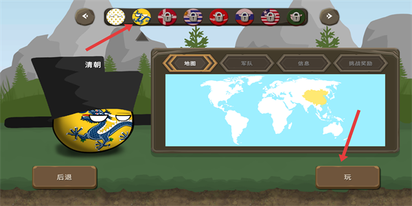 2、挑選目標(biāo)國(guó)家,如清朝,點(diǎn)擊玩,進(jìn)入難度選擇環(huán)節(jié),進(jìn)入游戲地圖界面。