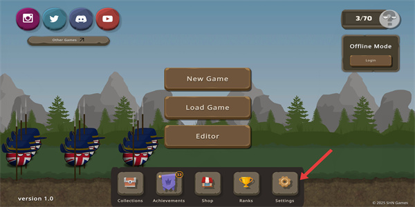 1、玩家加載完畢后,進入游戲菜單頁面,點擊游戲界面下方的設(shè)置選項。