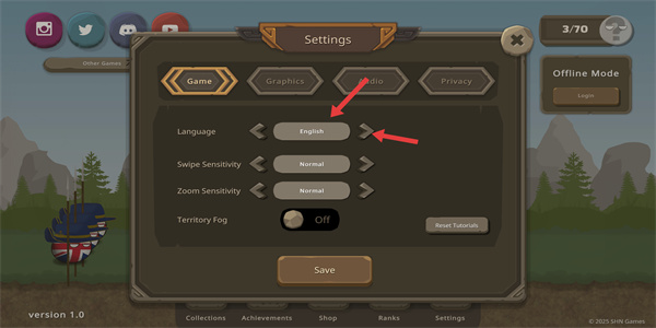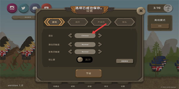 2、游戲初始語言設(shè)置為英文,玩家點擊右邊切換鍵,切換尋找中文。