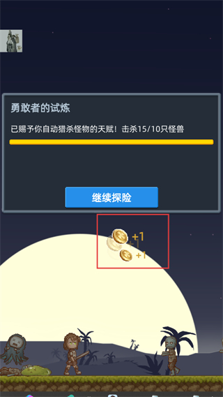 2、參與勇敢者的試煉角色會(huì)自動(dòng)獵殺怪獸,在獵殺過程中積累擊殺數(shù)量,完成試煉可獲得自動(dòng)獵殺的天賦和金幣獎(jiǎng)勵(lì)。
