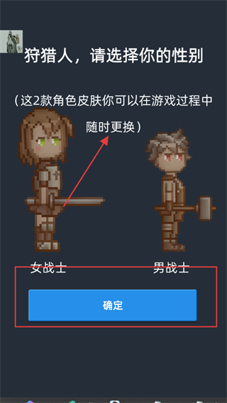 1、在游戲開始時(shí)選擇女戰(zhàn)士或男戰(zhàn)士作為初始角色,且游戲過程中可隨時(shí)更換角色皮膚,打造個(gè)性化的狩獵者形象。