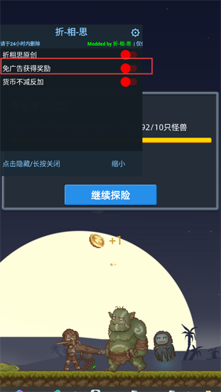 4、在游戲里面點(diǎn)擊內(nèi)置可享受免廣告獲得獎(jiǎng)勵(lì)的便利,更高效地獲取資源、升級(jí)角色,持續(xù)探索不同場(chǎng)景,挑戰(zhàn)各類怪獸。