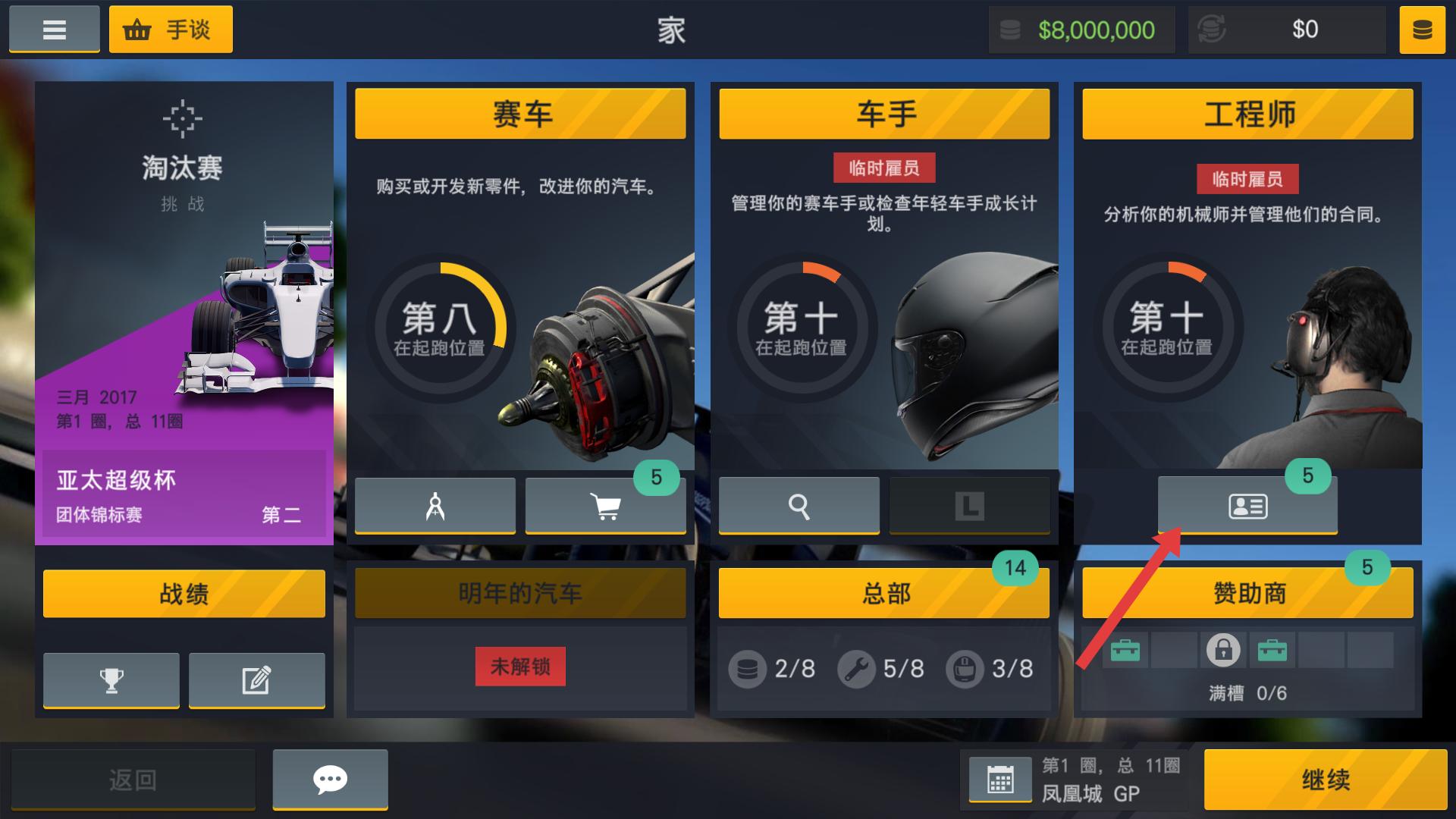 賽車經(jīng)理2游戲app怎么更換工程師的啊
