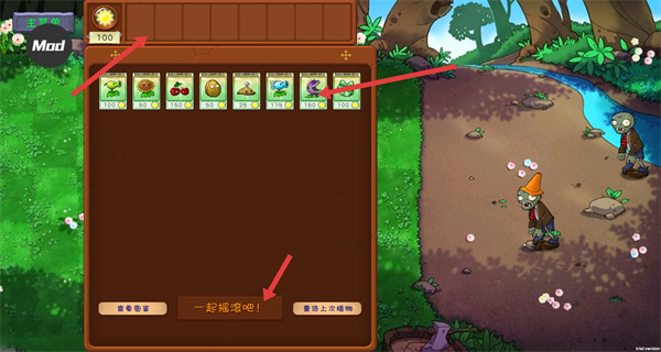 2、編隊(duì)界面搭配植物選好攻擊與防御陣容后,點(diǎn)擊一起搖滾吧進(jìn)入關(guān)卡,通過(guò)合理組合高效應(yīng)對(duì)僵尸的進(jìn)攻。