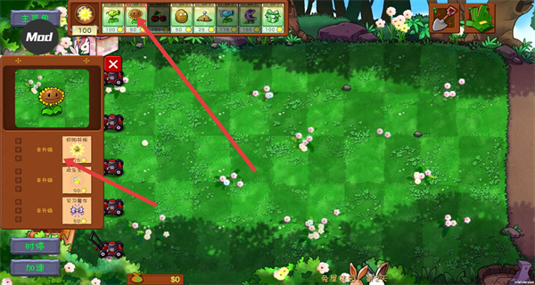 3、內(nèi)置菜單解除資源限制,允許自由測(cè)試各類(lèi)植物組合??梢绘I重置關(guān)卡進(jìn)度反復(fù)嘗試不同戰(zhàn)術(shù),方便研究最優(yōu)通關(guān)方案。