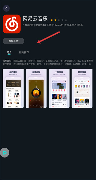 3、在應(yīng)用詳情頁面,點擊下載按鈕,開始下載應(yīng)用,若需暫??牲c擊暫停下載按鈕。
