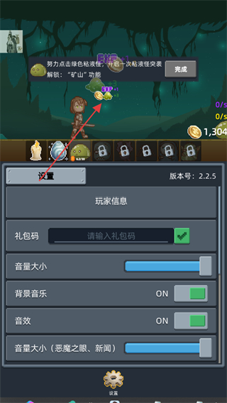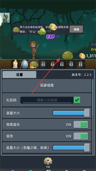 3、點擊對綠色粘液怪怪物進(jìn)行攻擊,觸發(fā)戰(zhàn)斗并獲取經(jīng)驗提升角色等級,解鎖新的技能和能力,增強(qiáng)角色在探險和戰(zhàn)斗中的實力。