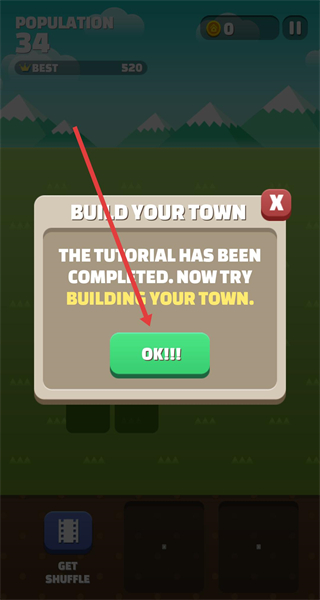 3、主界面點(diǎn)擊BUILD YOUR TOWN按鈕開啟城鎮(zhèn)建設(shè)流程,通過合并數(shù)字塊提升人口逐步解鎖建筑開啟小鎮(zhèn)發(fā)展之旅。