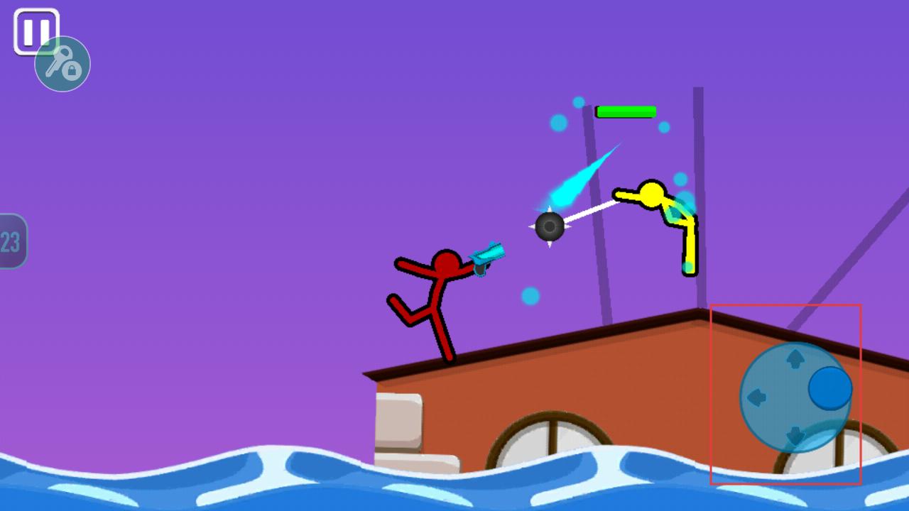 3、通過右側方向鍵操控火柴人移動,同時利用武器攻擊敵方,在帶有建筑和水的場景中靈活作戰(zhàn)。